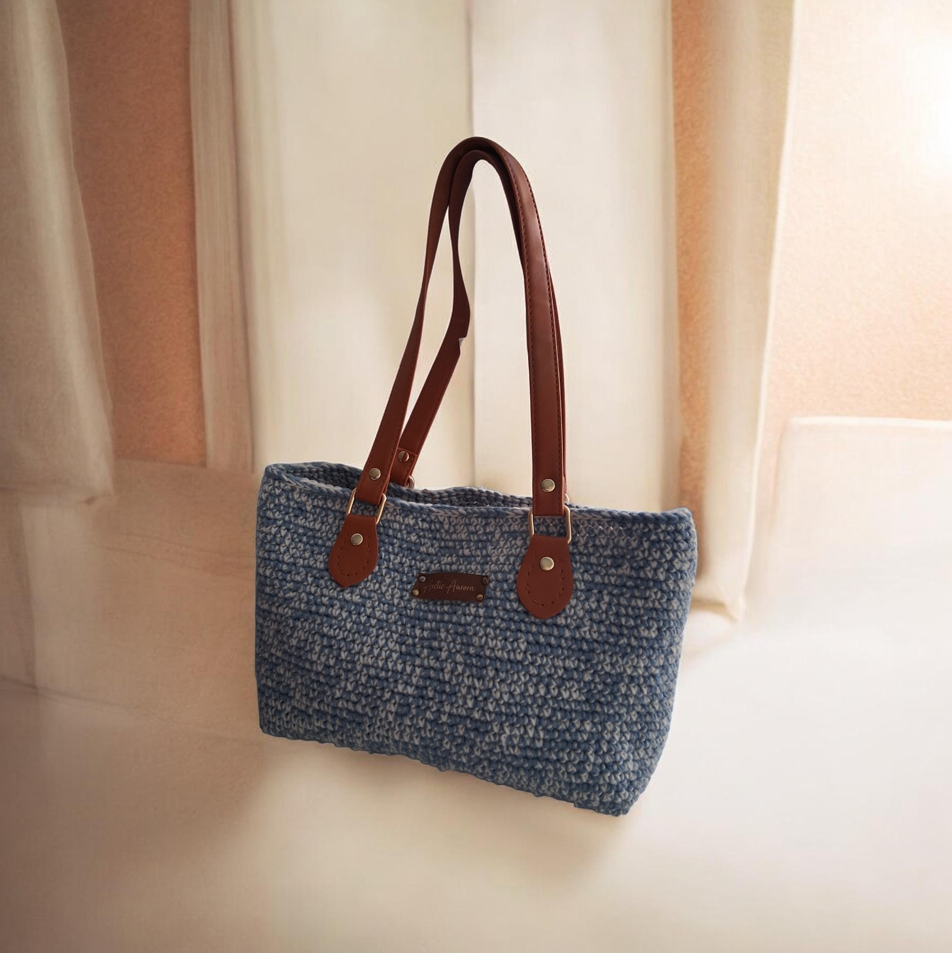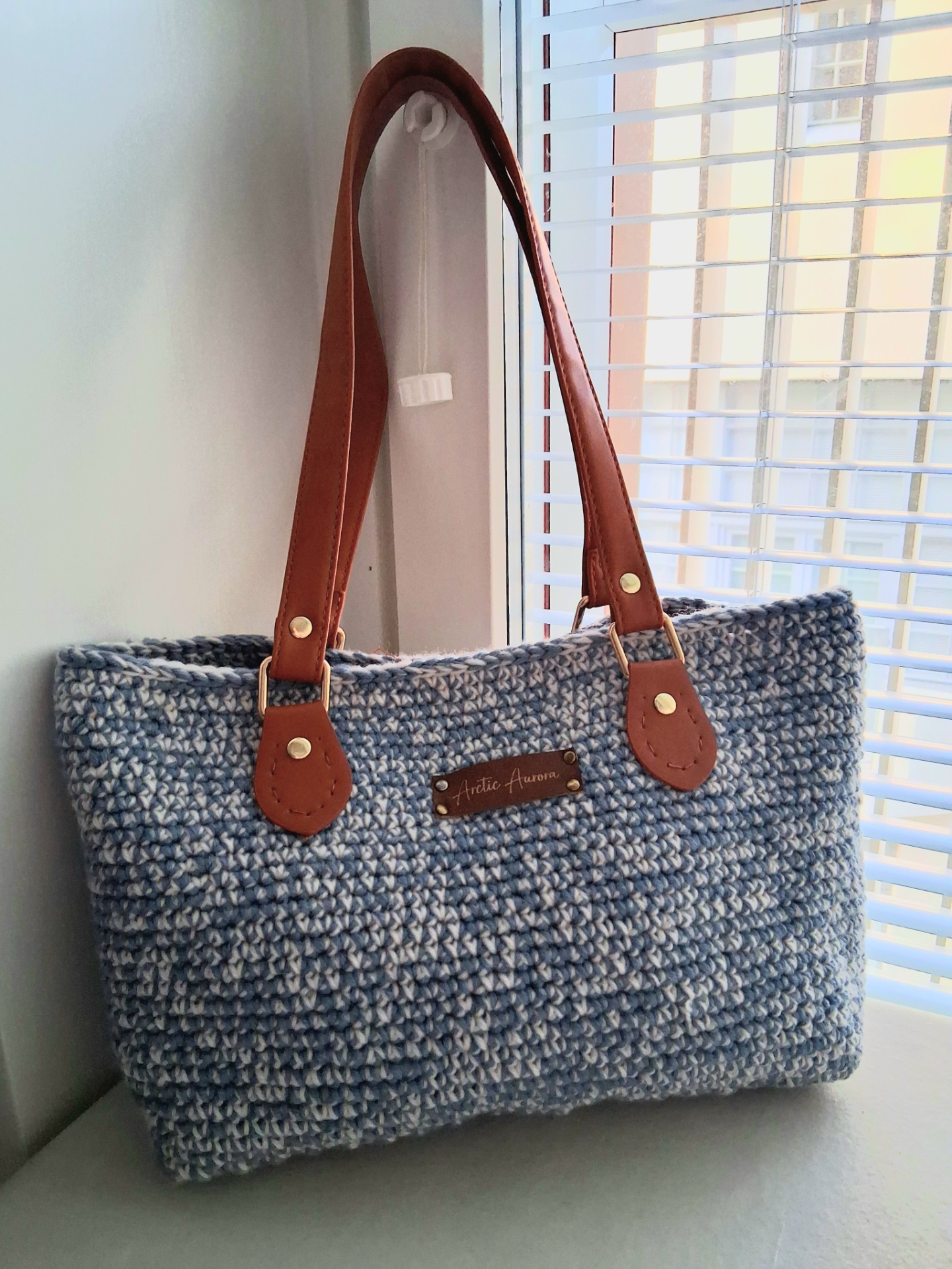 Virkattu käsilaukku. Villa mohair mix, 2 langan yhdistelmä. Raidas kesäinen väri. Tilava laukkua arkipäivään.